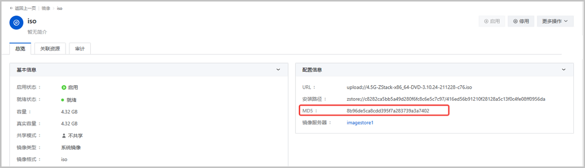 ZStack Cloud 5.0.0开始,系统将自动计算上传镜像的MD5值并在镜像详情页展示,用户可根据该MD5值核验上传的镜像是否完整无损。