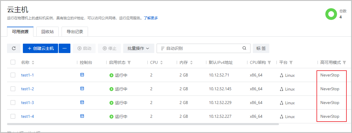 • NeverStop:云主机异常关机时会自动重启。