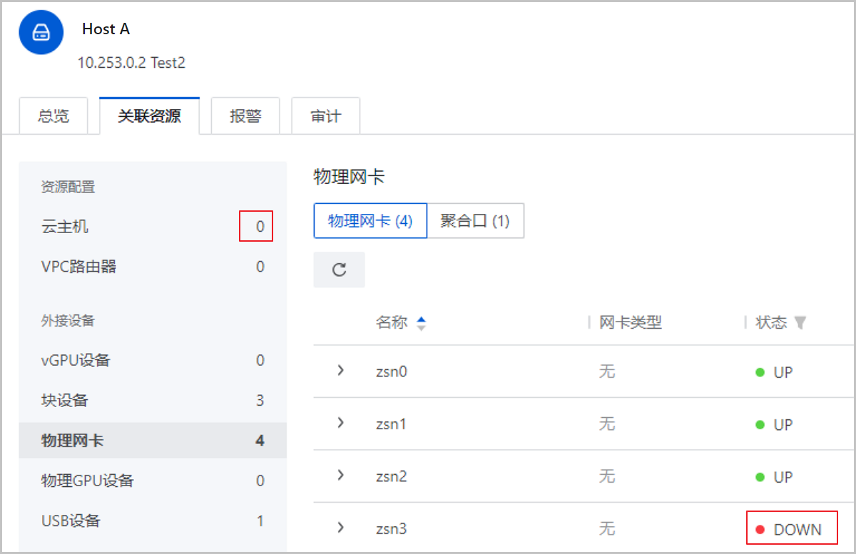 图 3. 物理机Host A业务网卡zsn3故障