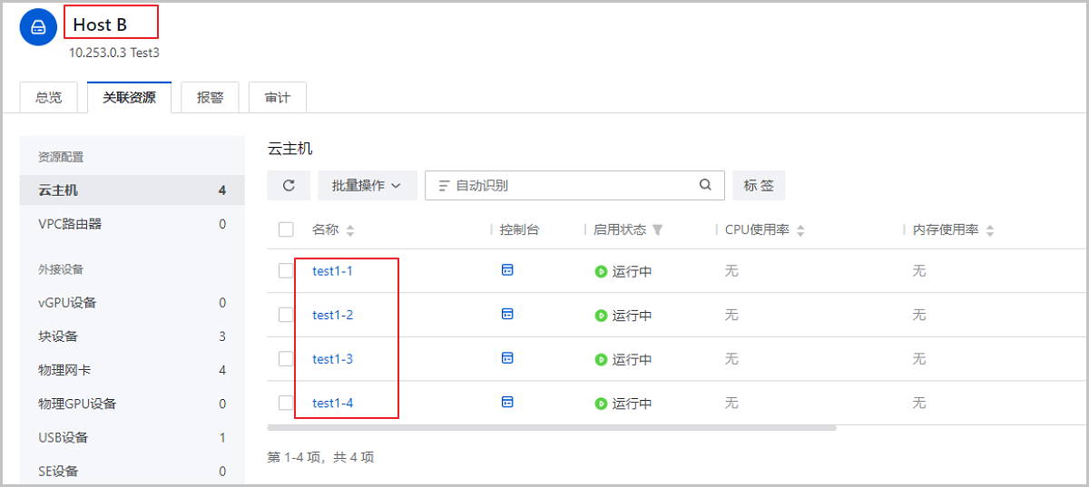 图 4. 云主机迁移至物理机Host B