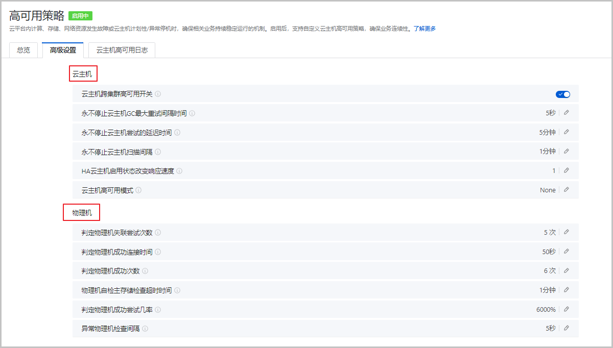 图 6. 云主机高可用策略高级设置