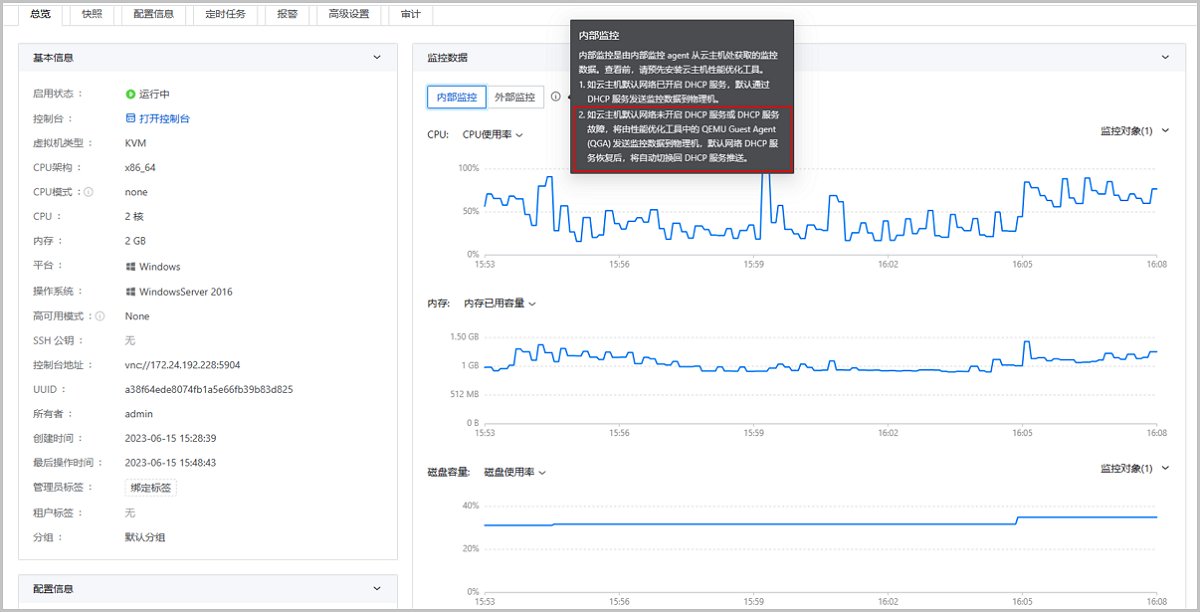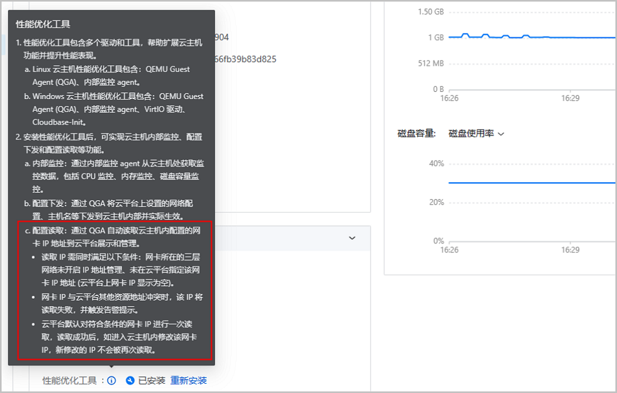 2. 支持通过性能优化工具 (QGA组件) 推送云主机内部监控数据