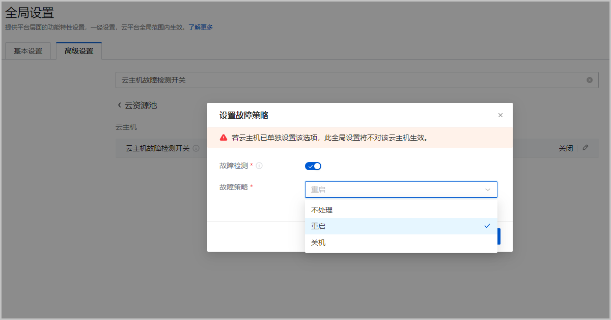 图 3. 全局设置云主机故障策略