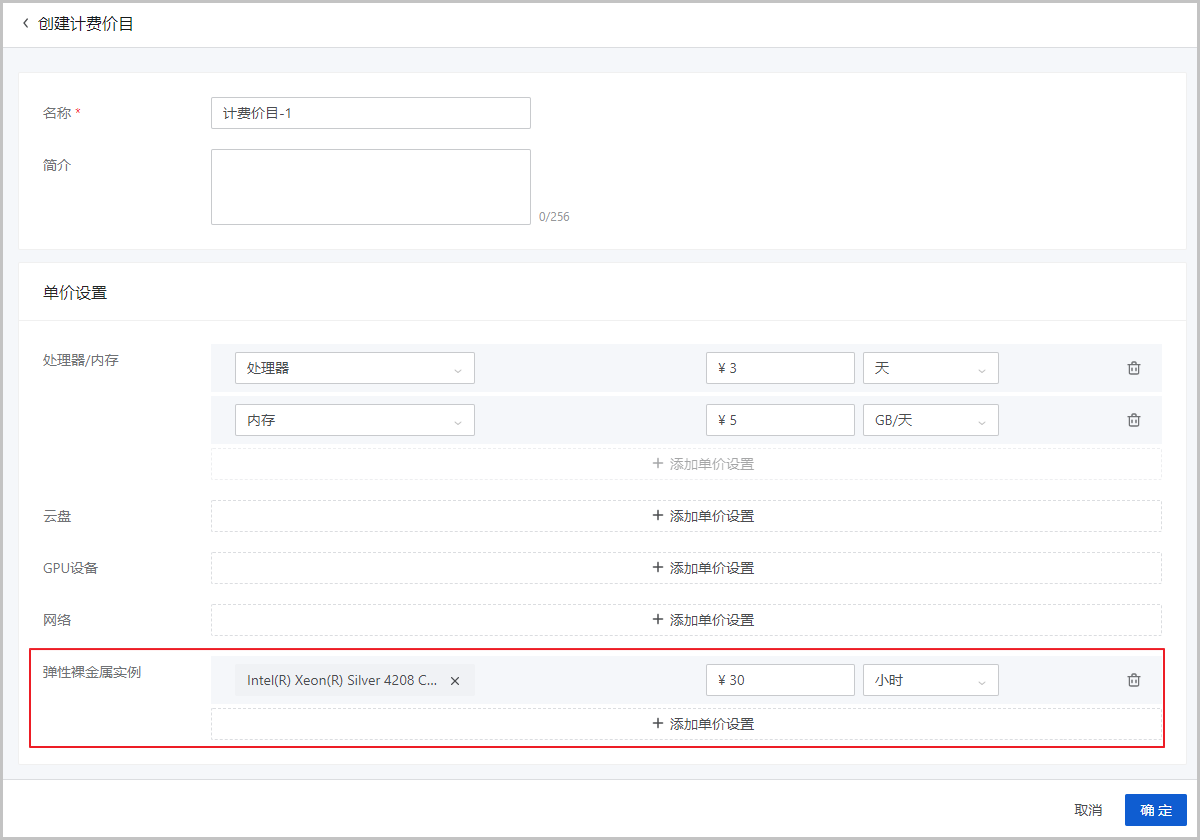 图 2. 弹性裸金属实例计费