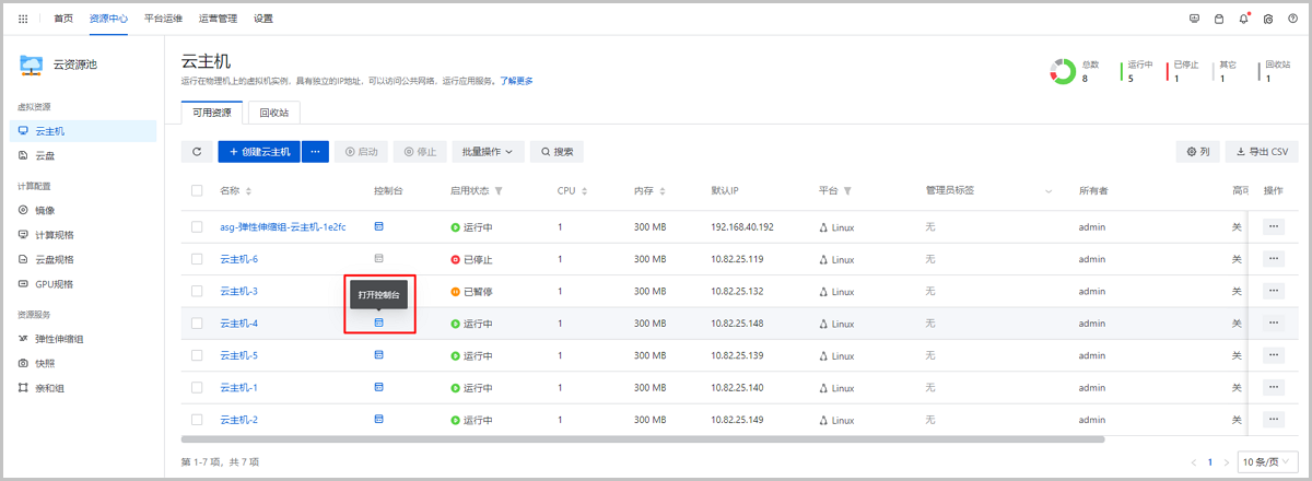 ZStack Cloud 4.0.0 中,云主机列表新增“控制台”列,用户可一键访问云主机控制台,如图 4所示: