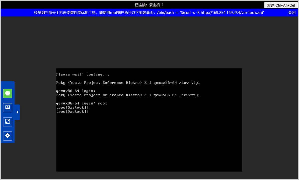ZStack Cloud 4.0.0 中,云主机控制台界面增加拖拽、切换外键、全屏、设置等控件,适配不同屏幕尺寸,进一步满足用户不同使用场景下的需求习惯,提升交互体验,如图 5所示: