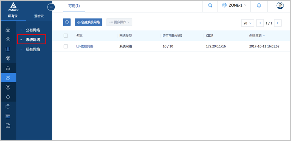 在ZStack 2.2中,三层网络里新增一种系统网络,是管理节点用于特定用途的网络,既可用于部署配置相关资源的管理网络,也可用于云主机迁移的迁移网络。例如,在云路由场景下,可作为单独的管理网络,与公有网络分离。