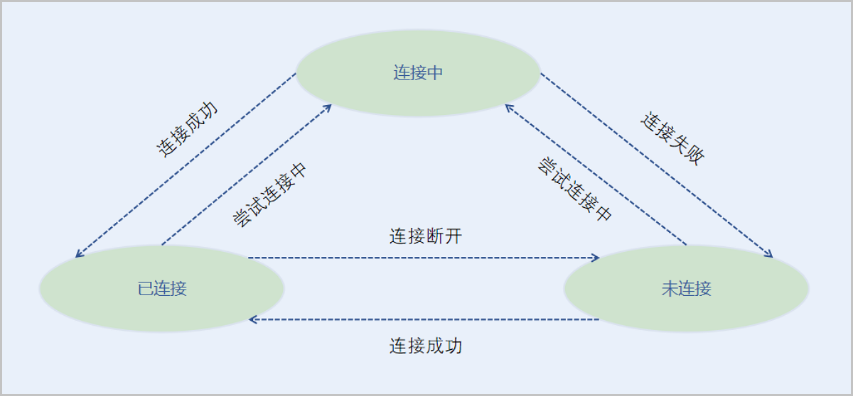 网络状态不稳定时,主机就绪状态可能发生转变。平台上,改变主机就绪状态的操作包括:重连。重连过程中,主机就绪状态转换如图 2所示: