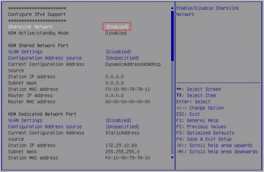 • 若裸金属设备支持复用管理口(BMC ShareLink Management Port),请提前在 BIOS 中将其禁用(Disable),确保该设备中有且仅有一个 IPMI 地址。