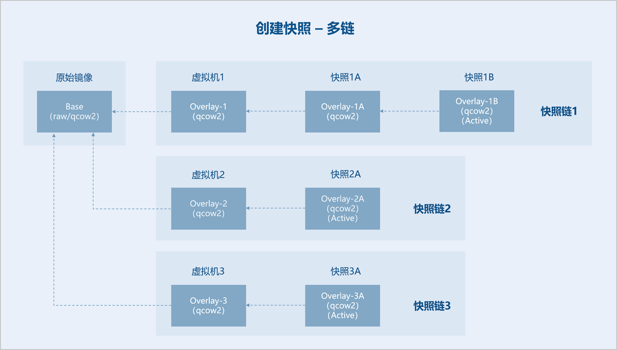 • 基于backing file创建多条快照链。